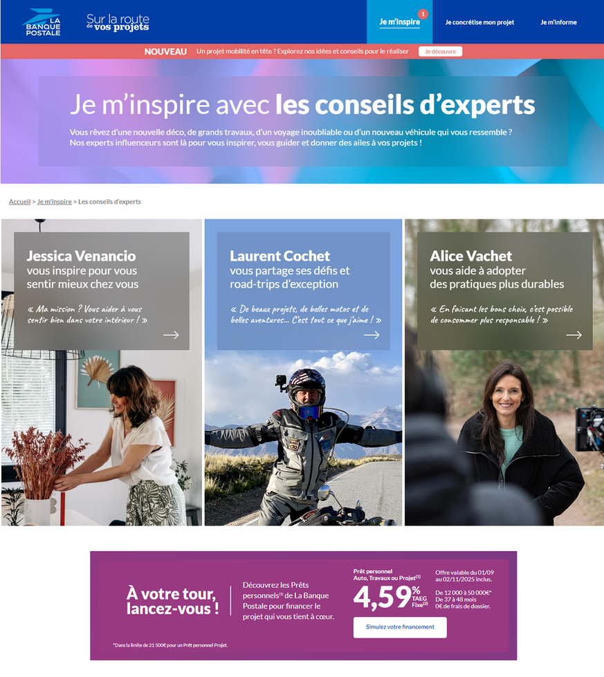 Sur la route de vos projets, c'est le site de La Banque Postale qui donne de l’élan à tous les projets de vie.